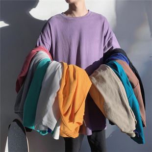 小尼力复古百搭纯棉纯色宽松短袖打底衫T恤