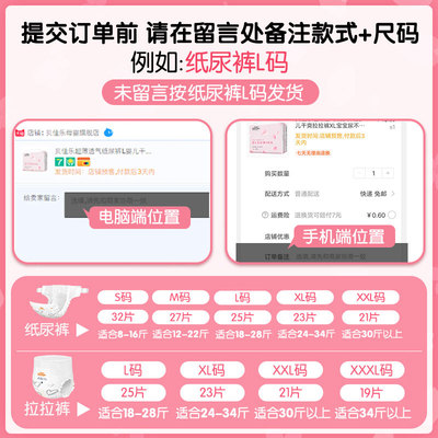 【拍3件6包】透气超薄纸尿裤拉拉裤