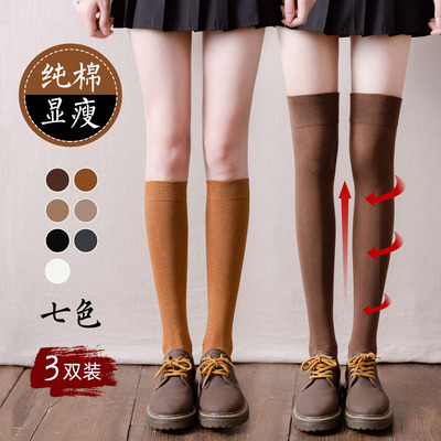 春秋款纯棉压力小腿袜jk高筒袜3双装