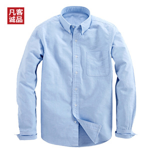 意邦伦男士衬衫新款休闲长袖纯色衬衣牛津纺