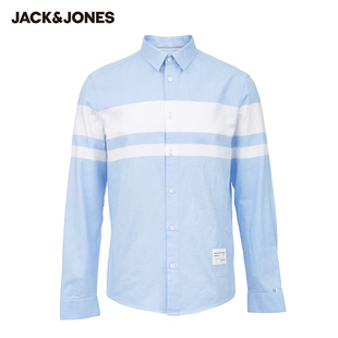 杰克琼斯秋男纯棉撞色休闲长袖衬衫百搭衬衣