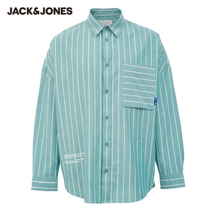 杰克琼斯休闲百搭宽松条纹尖领长袖衬衫衣