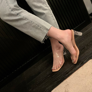 方头一字高跟水晶时尚凉鞋透明凉拖鞋夏外穿