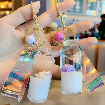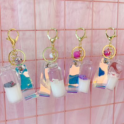 漂浮牛奶猪钥匙扣挂件