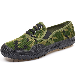 解放鞋军训迷彩鞋男耐磨不系鞋带劳保球鞋