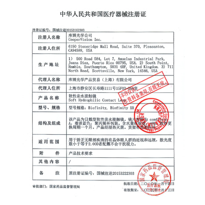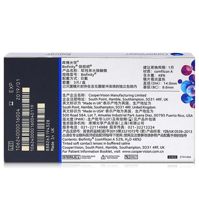 库博光学佰视明硅水凝胶月抛隐形眼镜3片