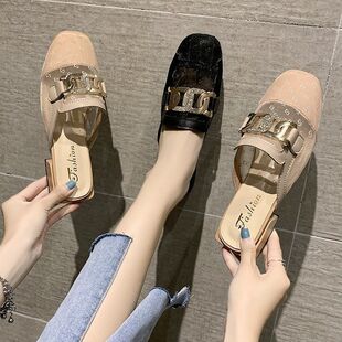 新款港风方头粗跟低跟穆勒鞋懒人凉拖鞋