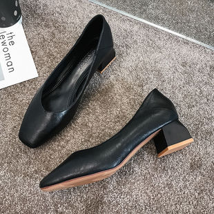 新款高跟鞋女百搭黑色工作职业5cm粗跟