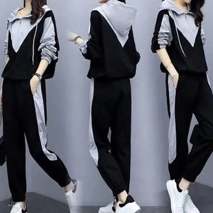 休闲拼接运动女套装秋冬季胖MM宽松两件套